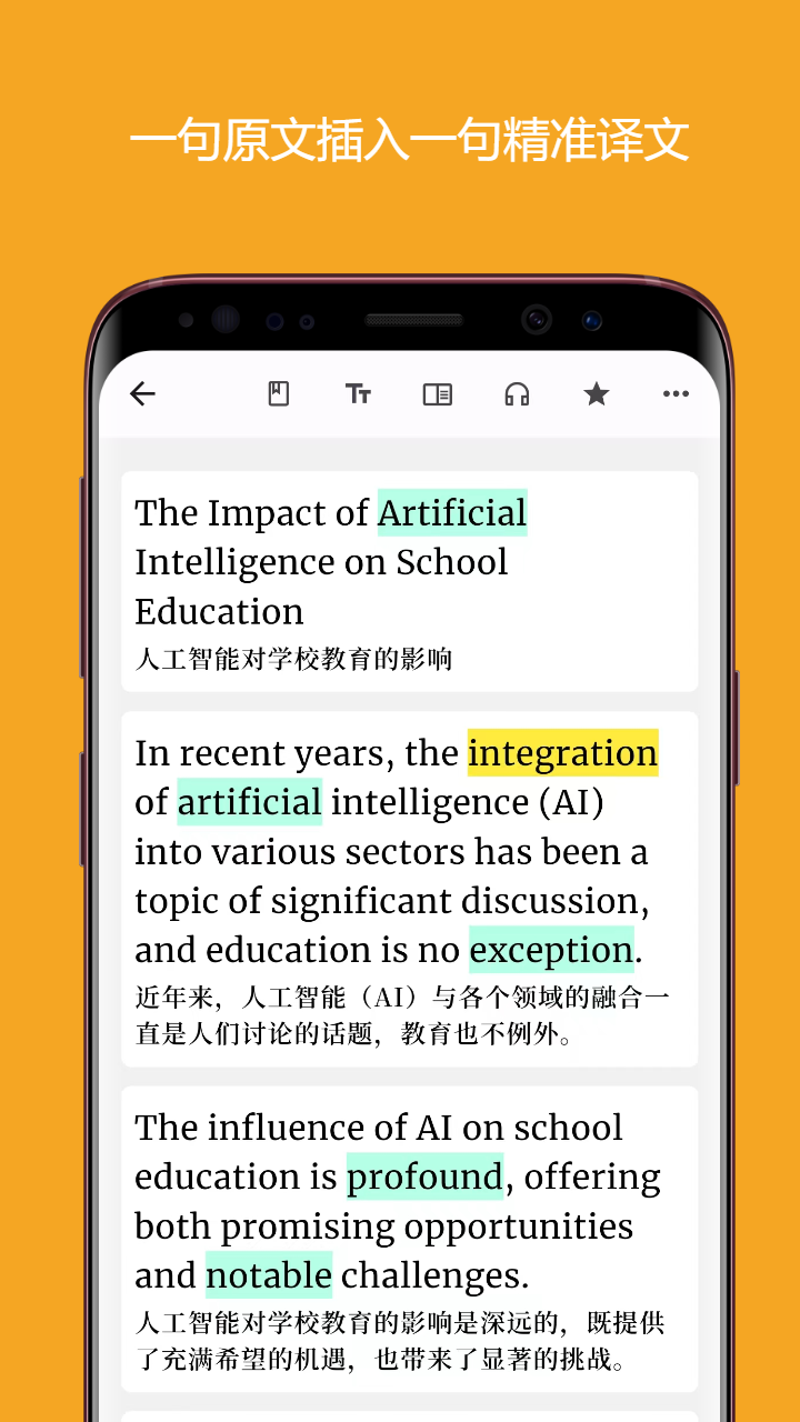 划词翻译:阅读时支持长按划词翻译或单击单词翻译,会员支持单词收藏及高亮显示。